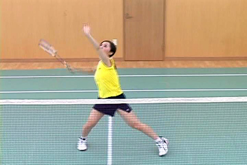 おおっ、さすがにバドミントンの元日本代表、彼女のプレイは迫力満点