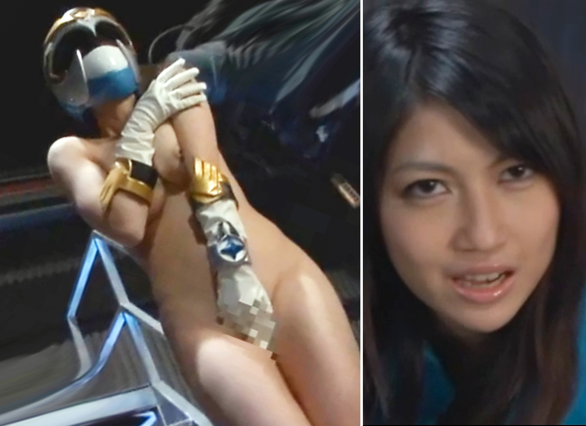 戦隊ヒロインが不完全変身でおっぱいポロリのハプニング