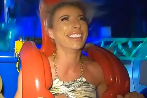 絶叫マシン・スリングショットでHなハプニング(16) きれいなセレブの右のおっぱいがずっと丸出しで・・