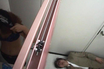 なんと!! 面接官はパーティションの下から着替えを覗いている。