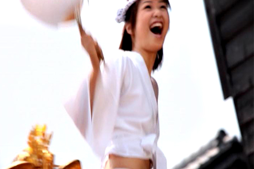 そのとき、担ぎ上げた男衆の手が彼女のフンドシに引っかかったのか、彼女の大事な白いふんどしがユルユルにゆるんでしまっていたのだ。