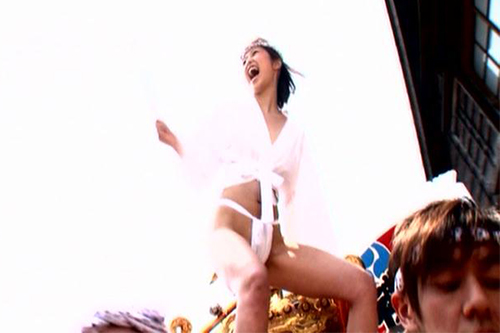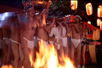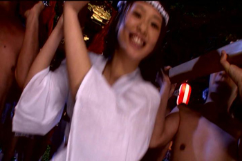 大合唱とともに担ぎ上げられた彼女の股間が、だらしなく垂れ下がったフンドシの横から、一瞬丸見えになった。