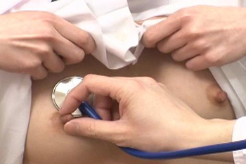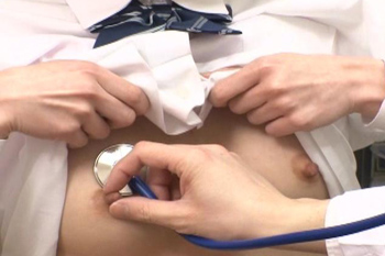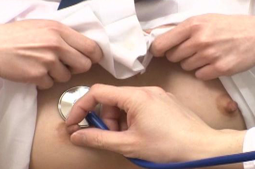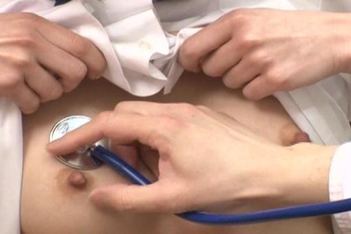 成美「ち・・聴診器を・・ち、乳首に当てるんですか?」