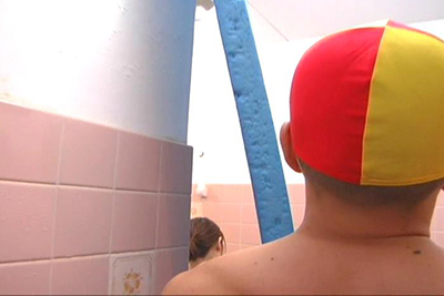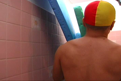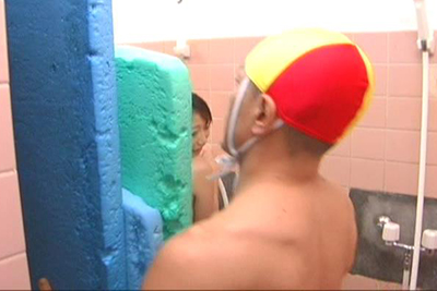 レスキューの教官(男子の先輩役)、シャワー室にイン・・